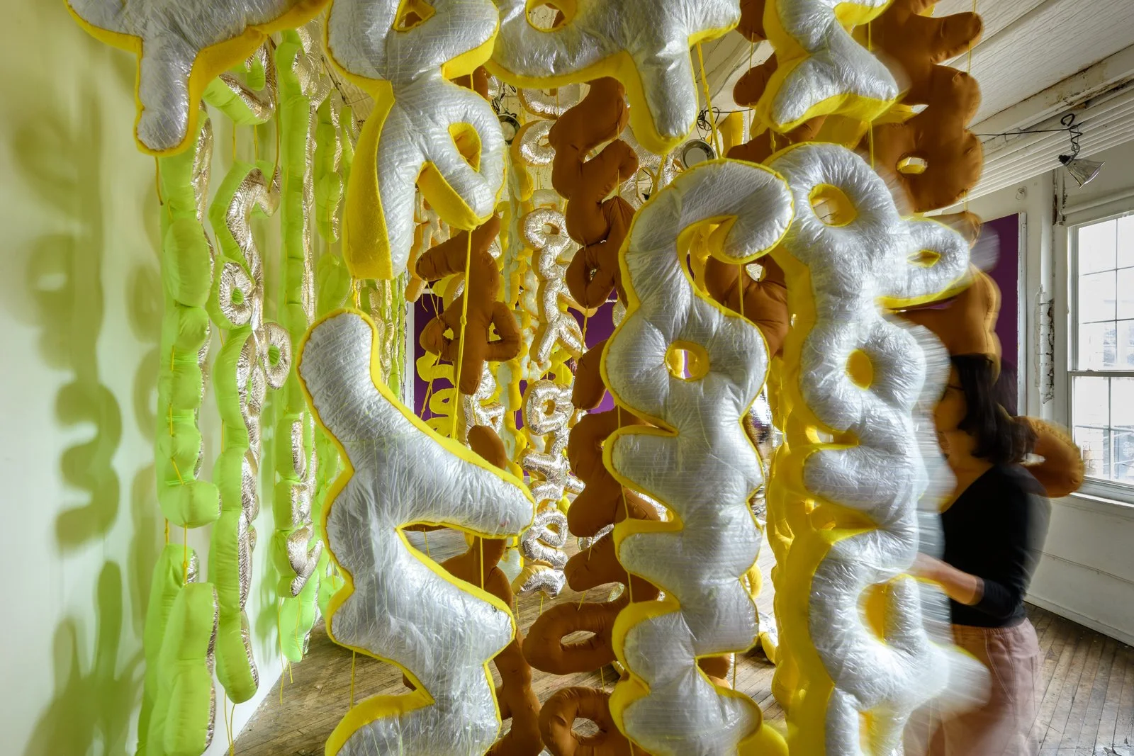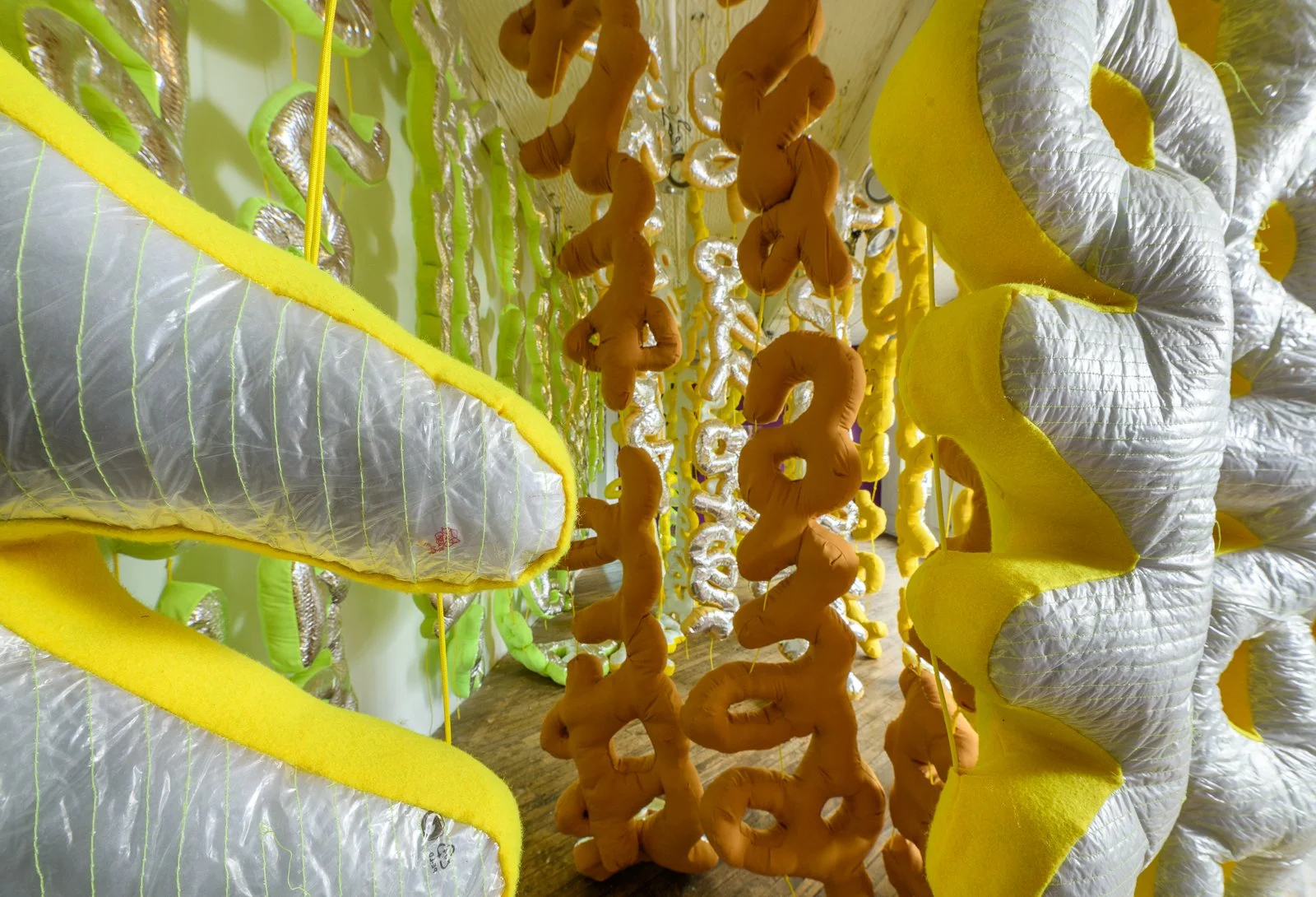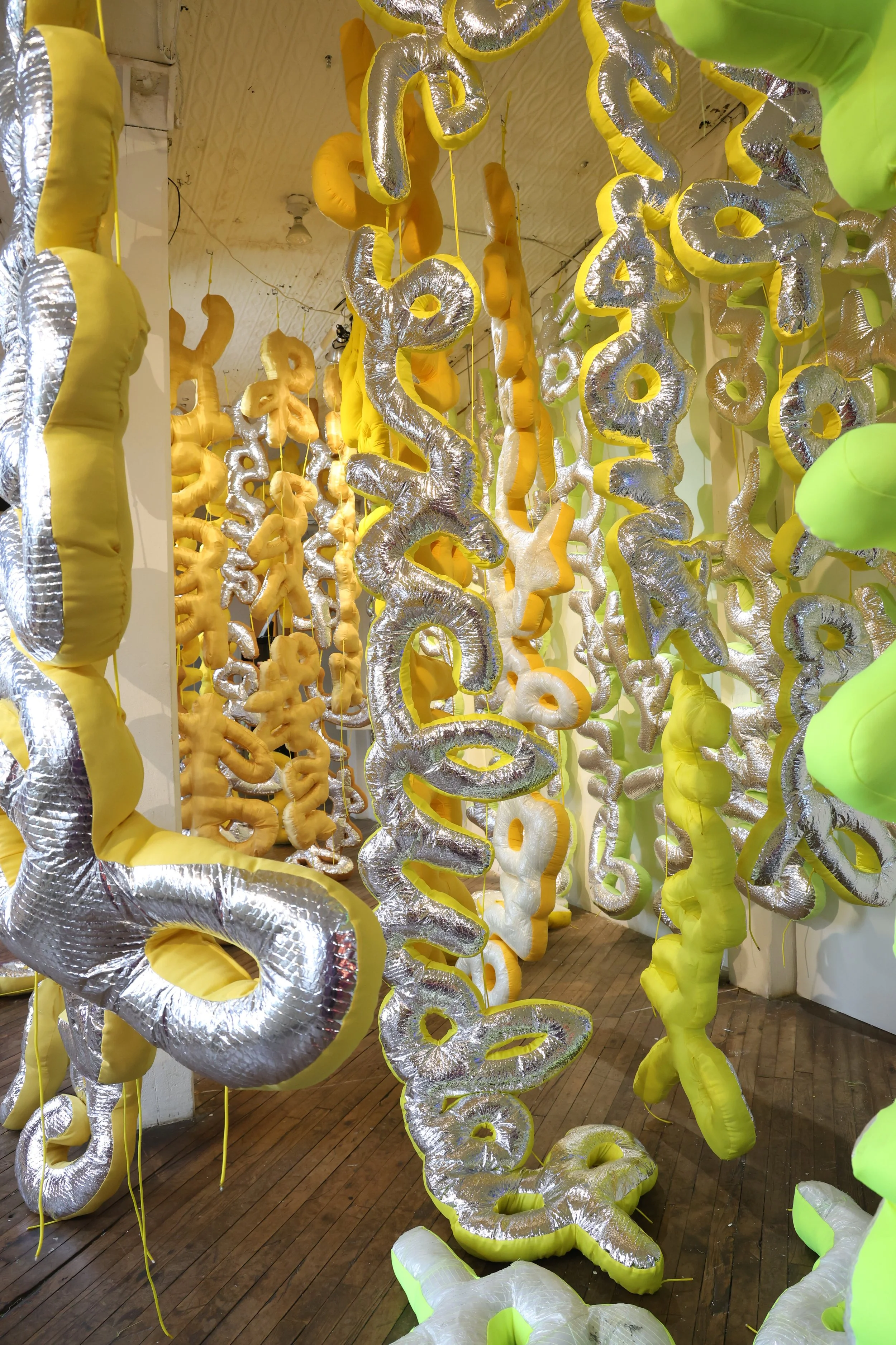 All words are based on my handwriting and each sentence is distinguished through a different shade and hue variant of yellow. In the built environment, yellow is a common color associated with caution, emergency, wait, construction, maintenance—something out of the ordinary or between the binary. I embrace yellow to reclaim the color assigned to me by the bio-racist bucketing system. These color categories have been with us for hundreds of years and are just one of the historically spun up threads that keep being rewoven into our shared tapestry. Viewers can traverse through the stuffed yellow words which may remind them of their earliest years when what was observed and experienced continues to be so shaping.