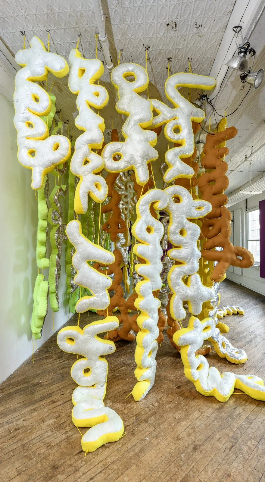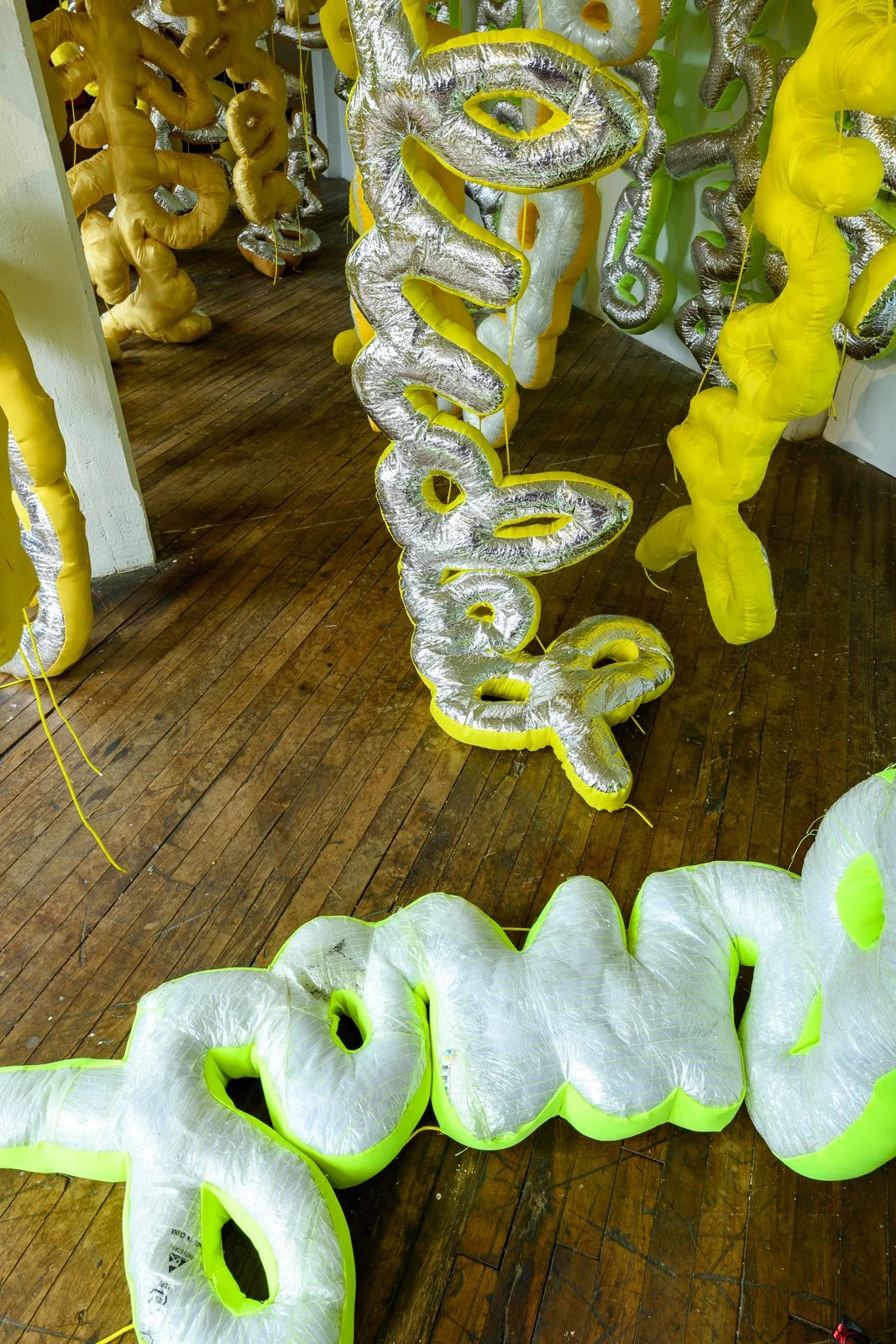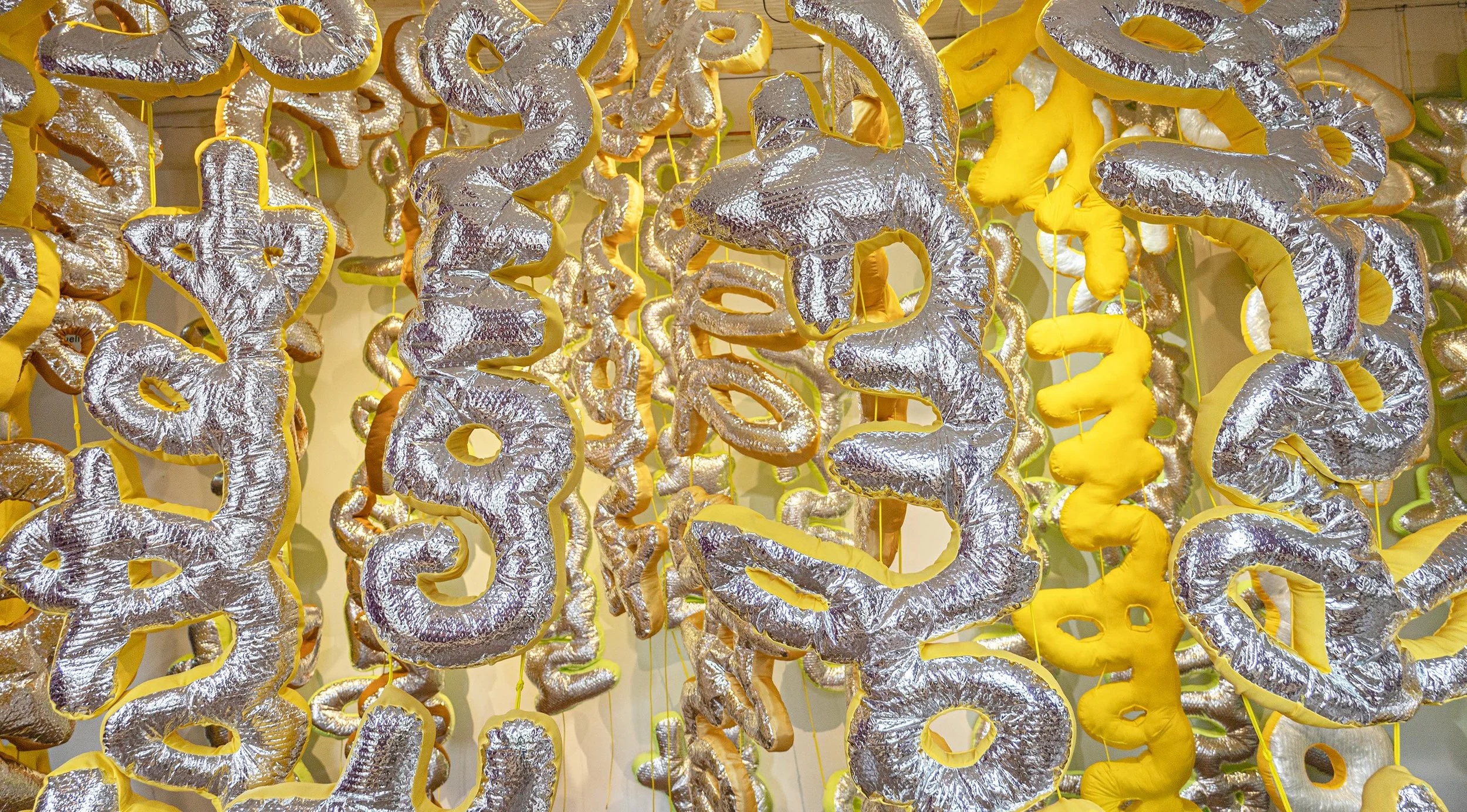 All words are based on my handwriting and each sentence is distinguished through a different shade and hue variant of yellow. In the built environment, yellow is a common color associated with caution, emergency, wait, construction, maintenance—something out of the ordinary or between the binary. I embrace yellow to reclaim the color assigned to me by the bio-racist bucketing system. These color categories have been with us for hundreds of years and are just one of the historically spun up threads that keep being rewoven into our shared tapestry. Viewers can traverse through the stuffed yellow words which may remind them of their earliest years when what was observed and experienced continues to be so shaping.