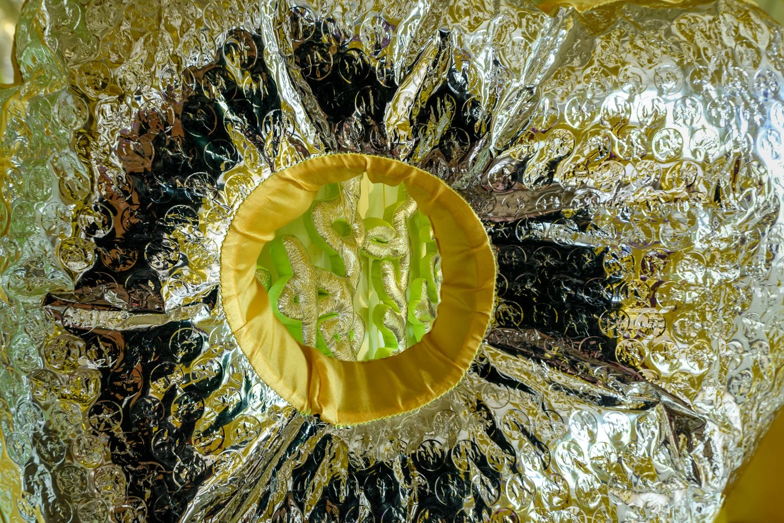 radiant barrier insulation, reused single-use plastic, polyfill, cotton, polyester, thread, rope